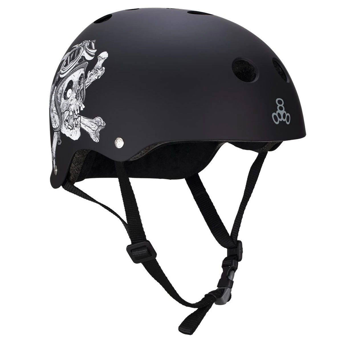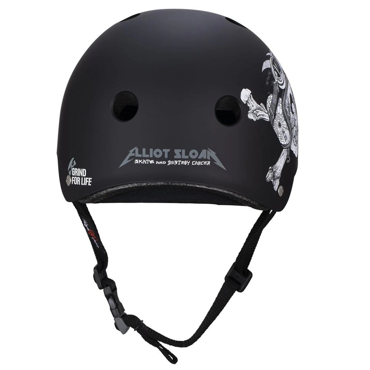 Elliot Sloan’s skull-adorned helmet combines the best of high impact absorbing EPS foam with thick dual density soft foam and plush Sweatsaver fabric. Triple Eight serves up the best in comfort and impact protection alongside the skeletal steez of Sir Sloan.